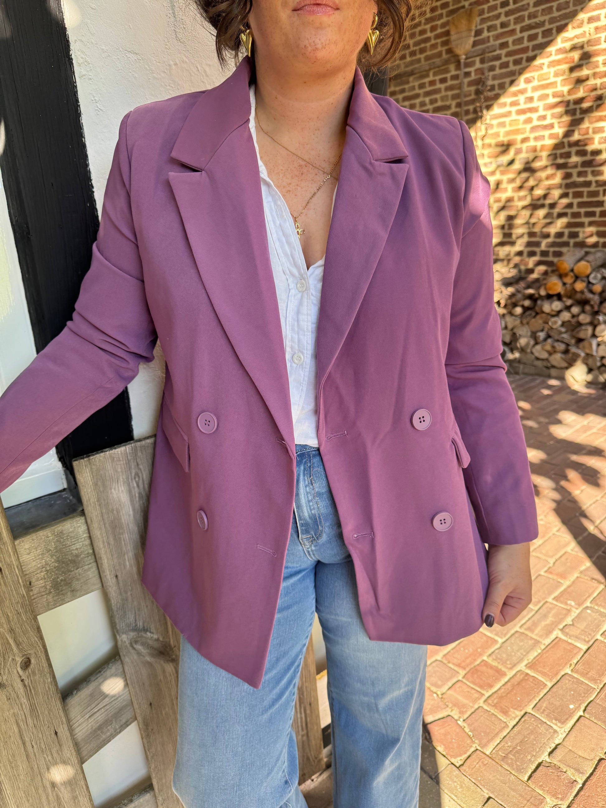 Oversized blazer met knopen. De stof van de blazer is super mooi en stevig, waardoor de blazer een luxe uitstraling heeft. De blazer kun je aan de voorkant sluiten met twee knopen. Aan de achterkant in het midden heeft de blazer een kleine split.