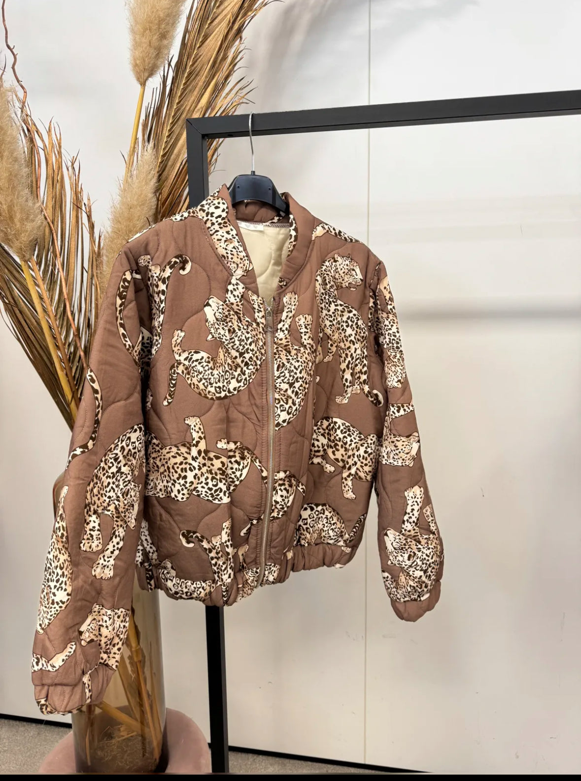 gewatteerde bomber met rits. De bomber heeft aan de onderkant een elastieken band