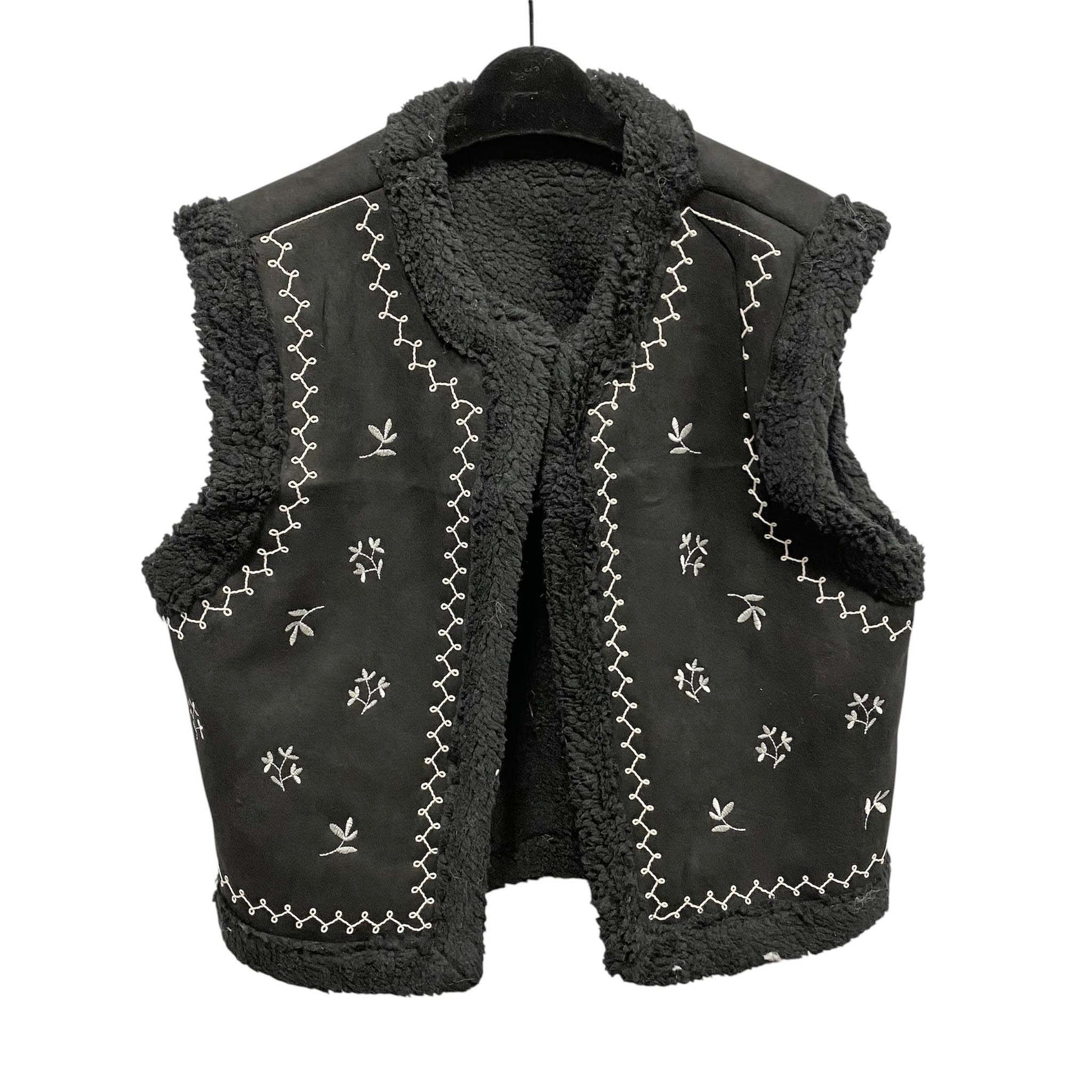 Kort teddy gilet met geborduurde details. Het gilet heeft een suedine stof en is perfect voor de herfst/winter
