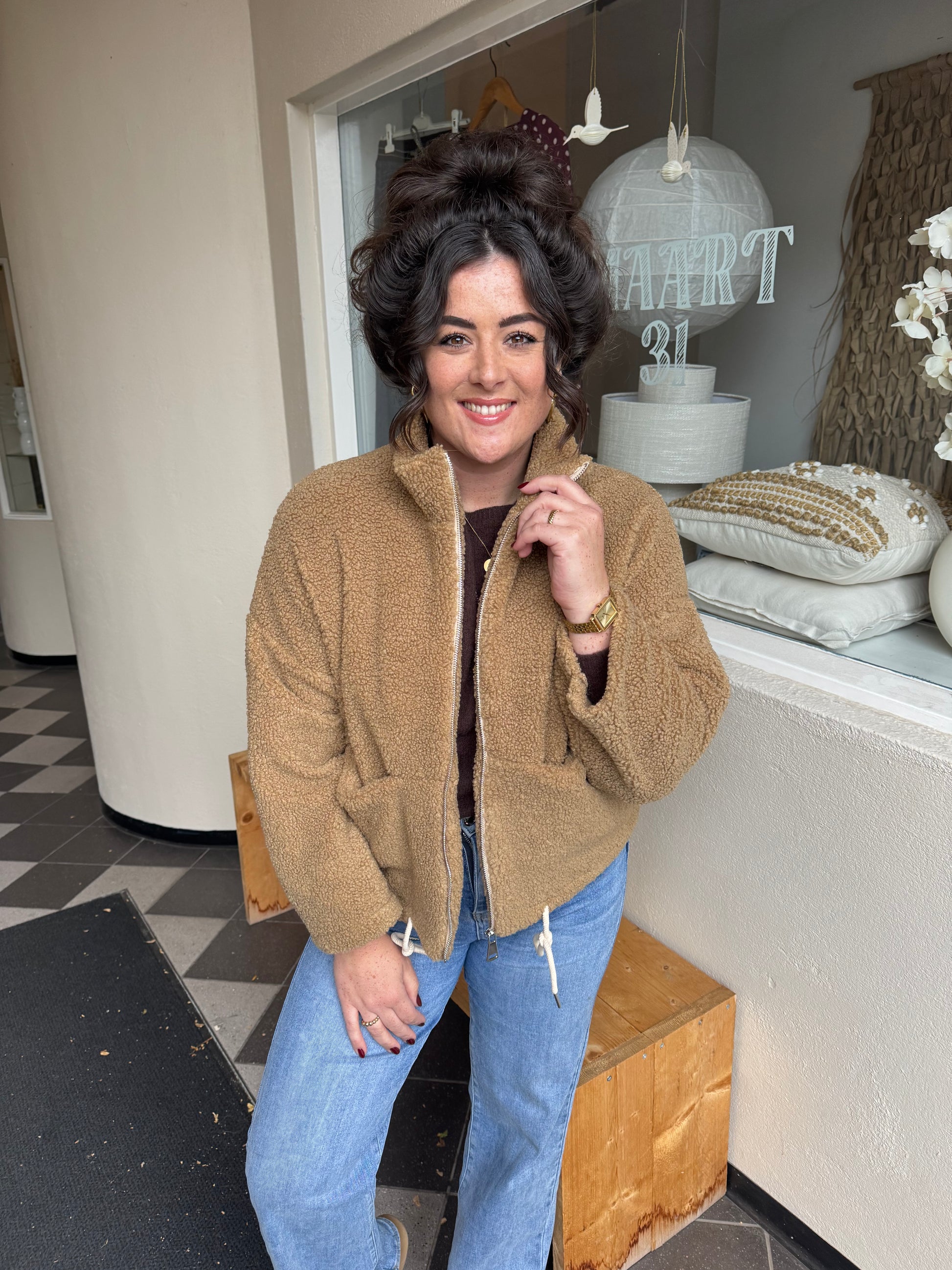 Hoe leuk is dit teddy jas/vest. De jas heeft zakken aan de voorkant en een rits.