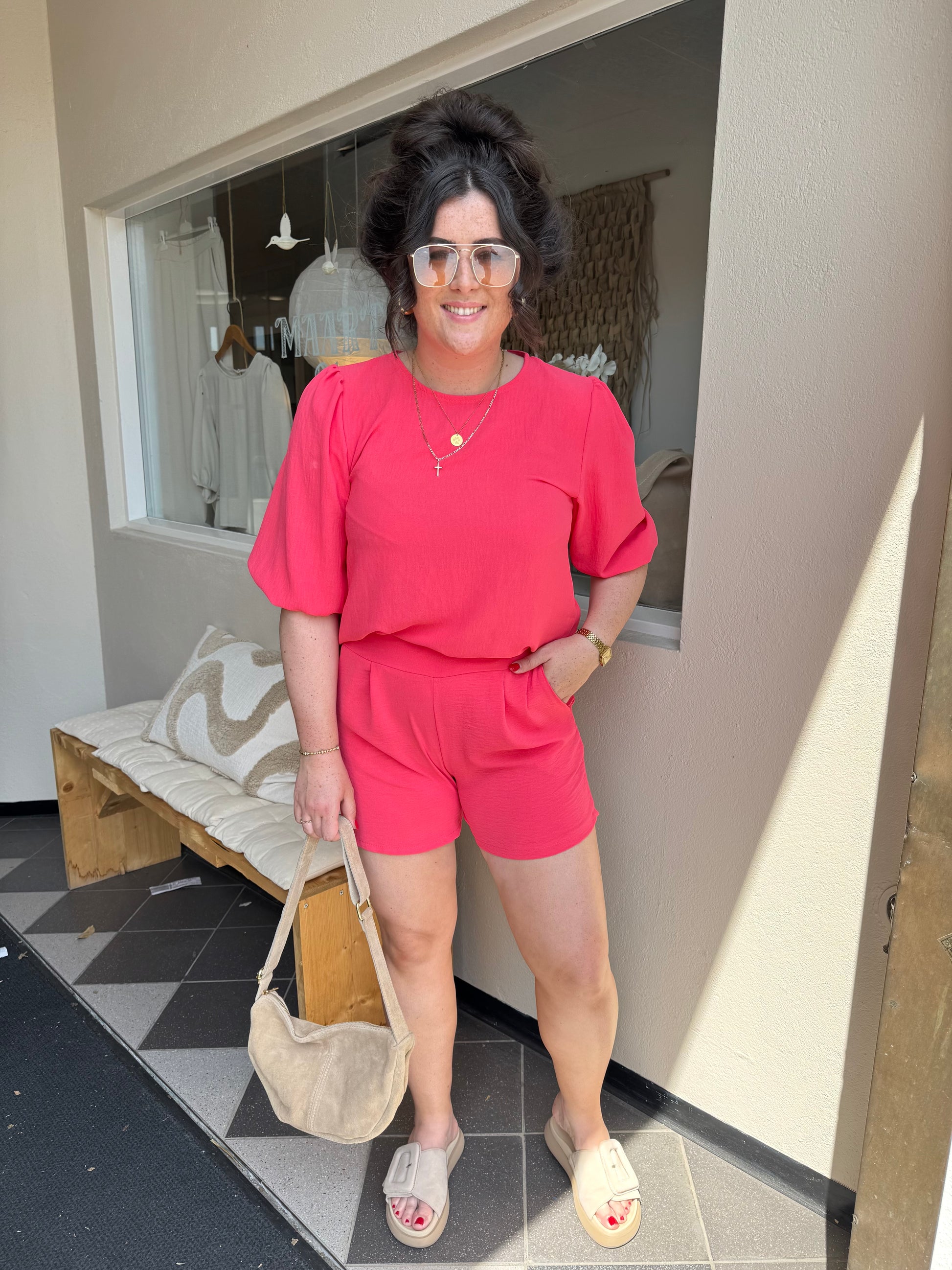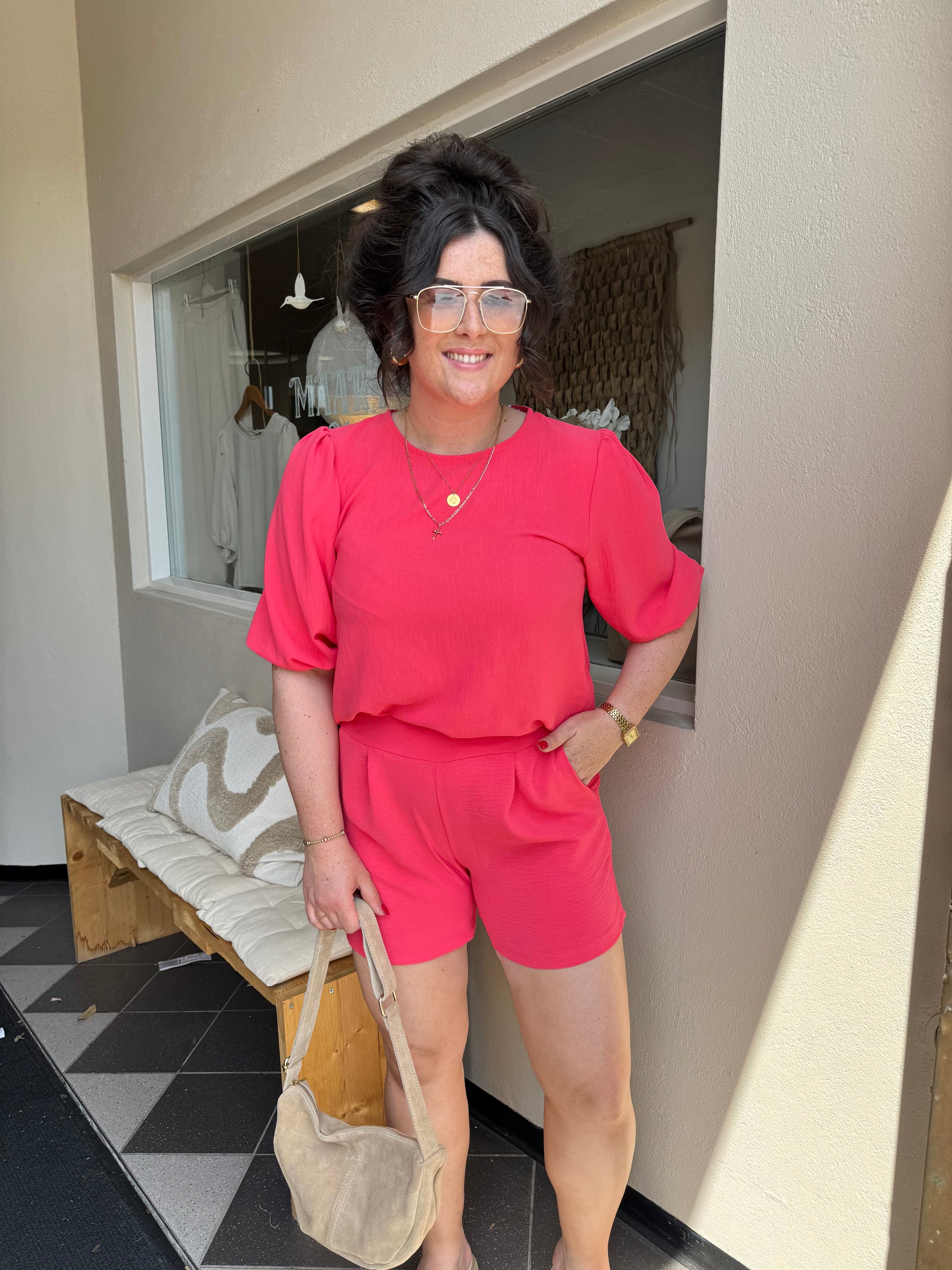 Leuke top met pofmouwen. Er zit een elastieke band aan de onderkant van deze mouwen. Aan de achterkant wordt de top aan de bovenkant gesloten met een knoopje