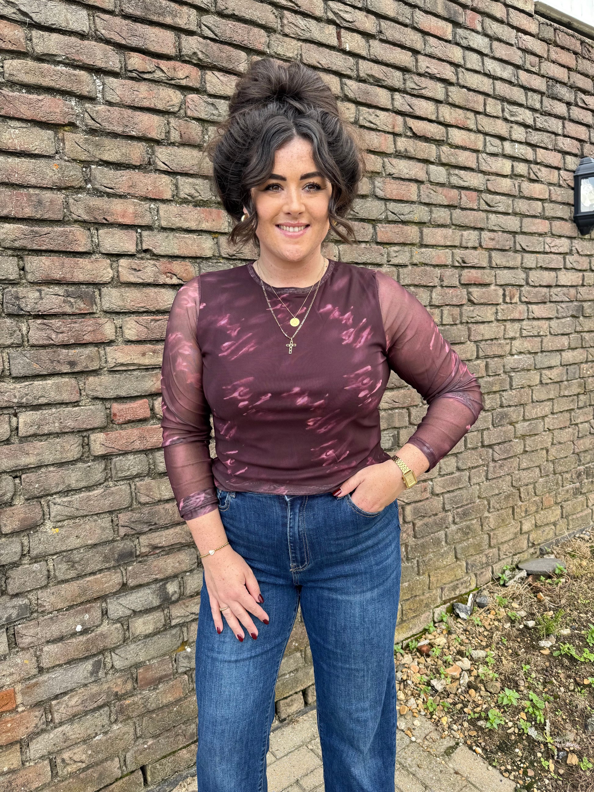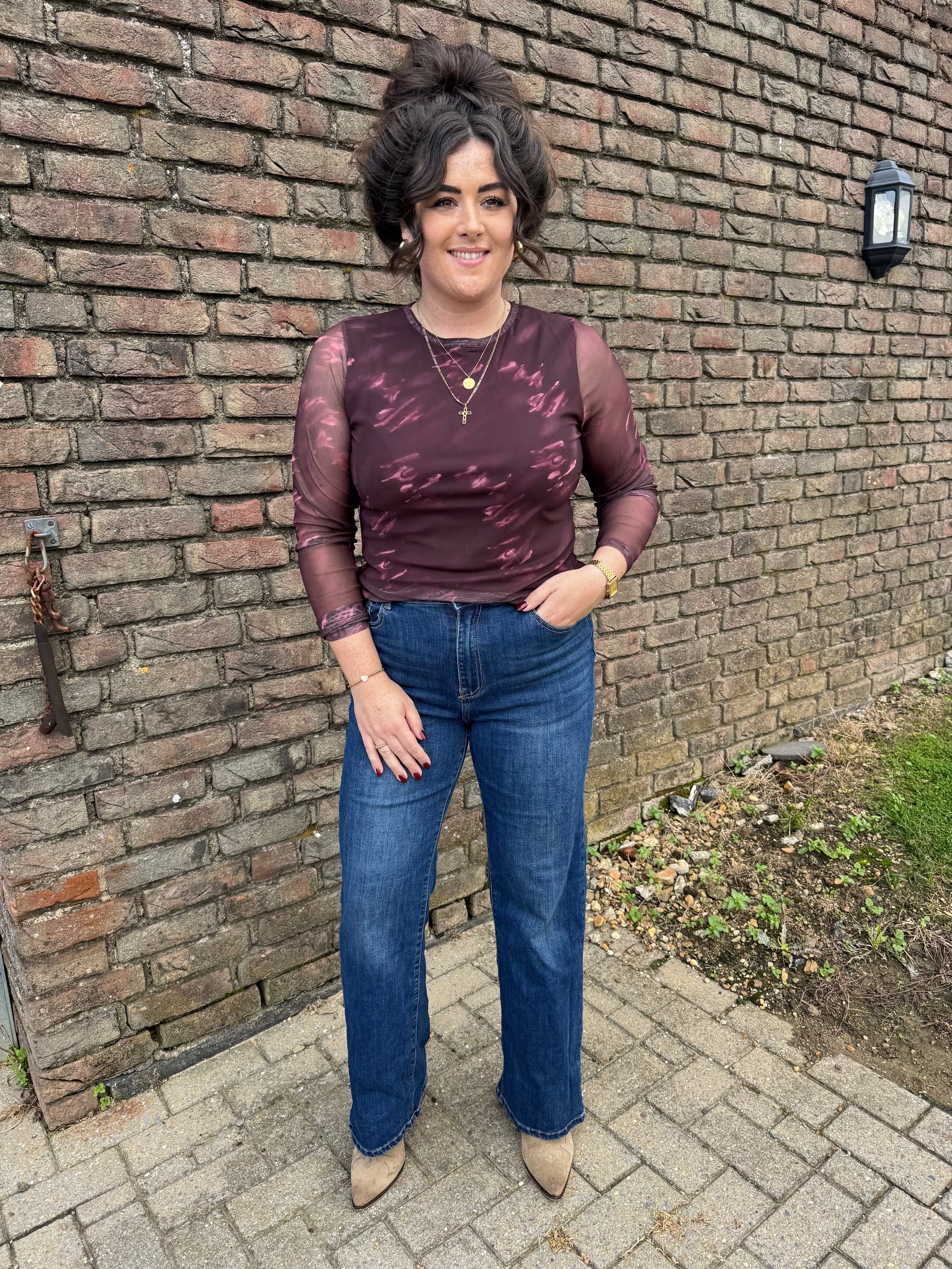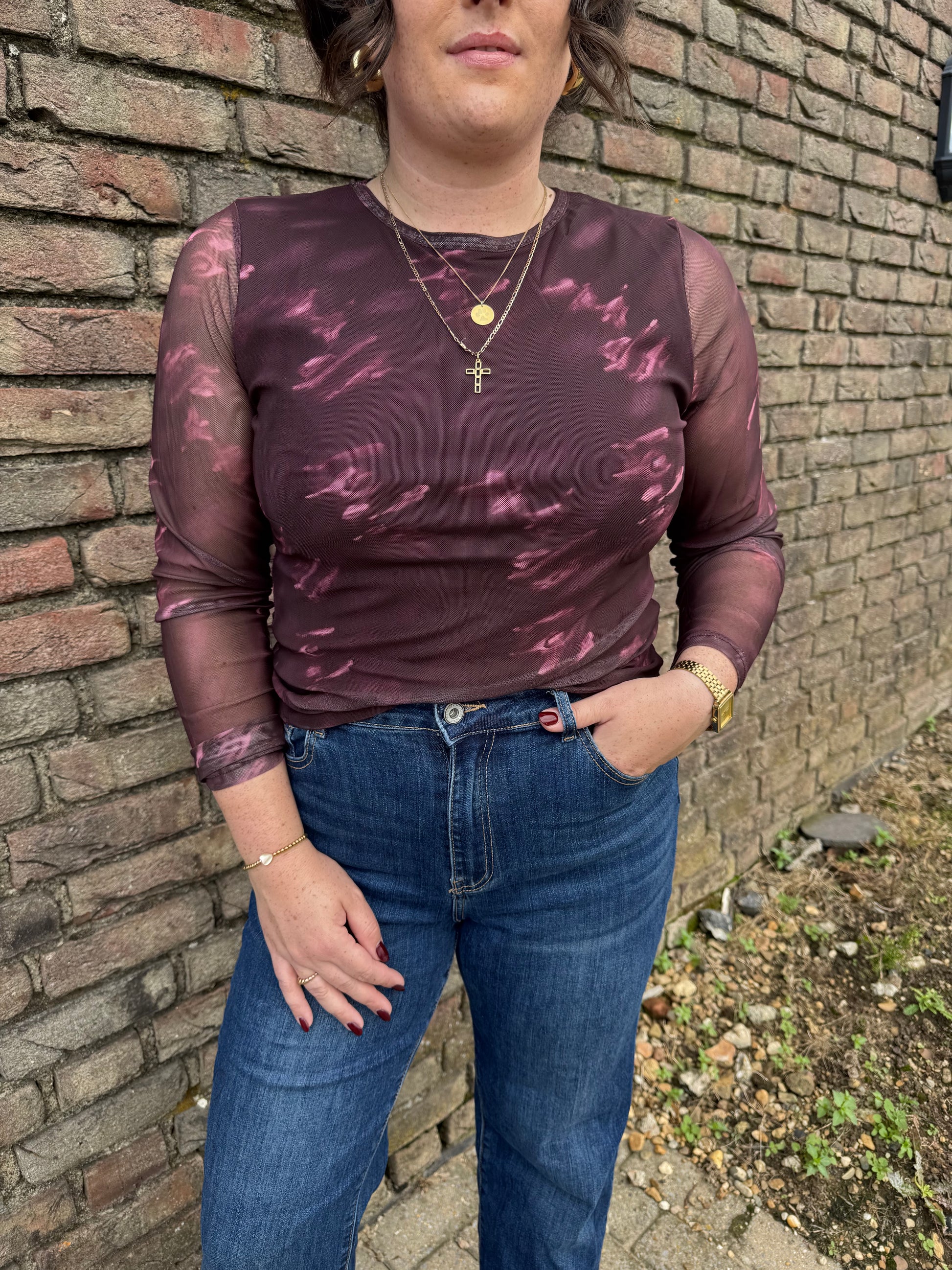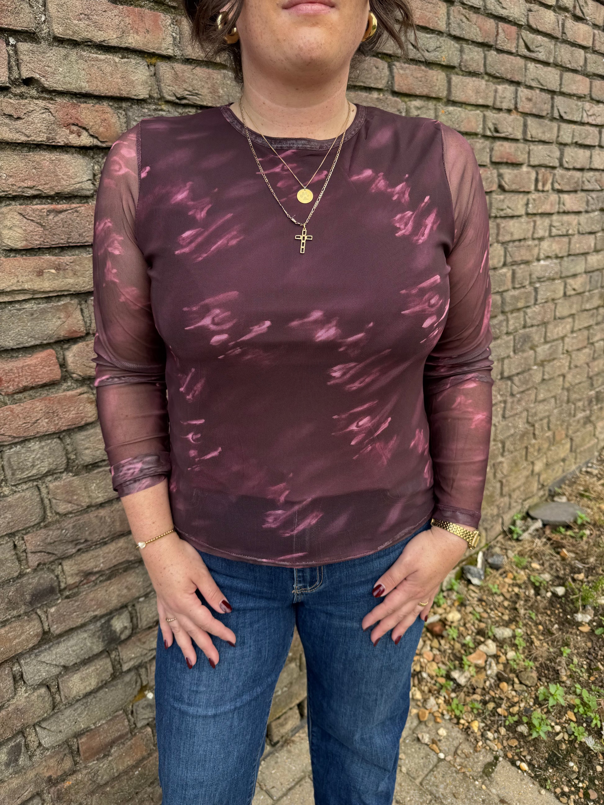 Hele leuke mesh top met print. Perfect voor ergens onder of leuk op een jeans. De top bevat lekker veel stretch en zit toch aansluitend.