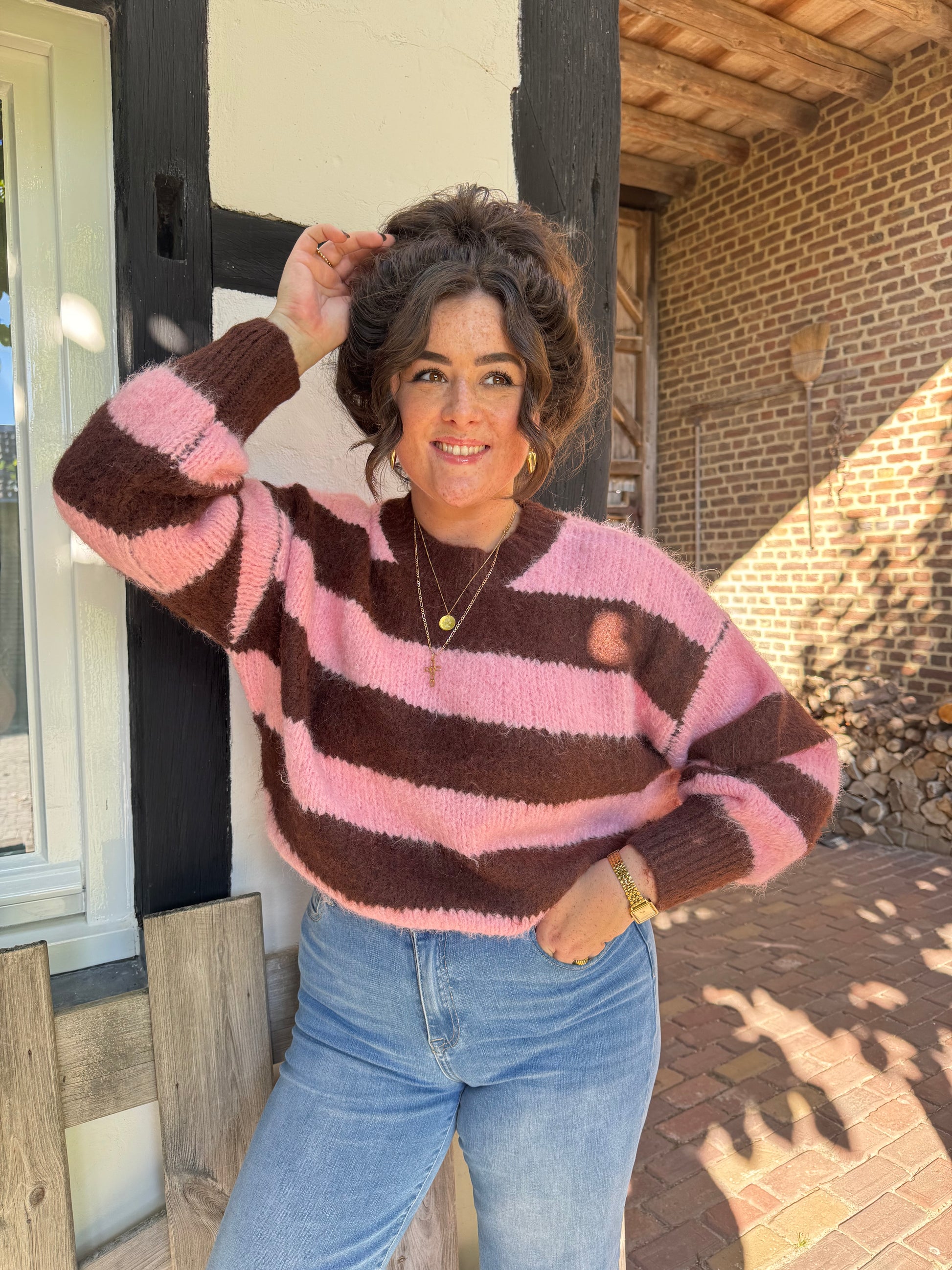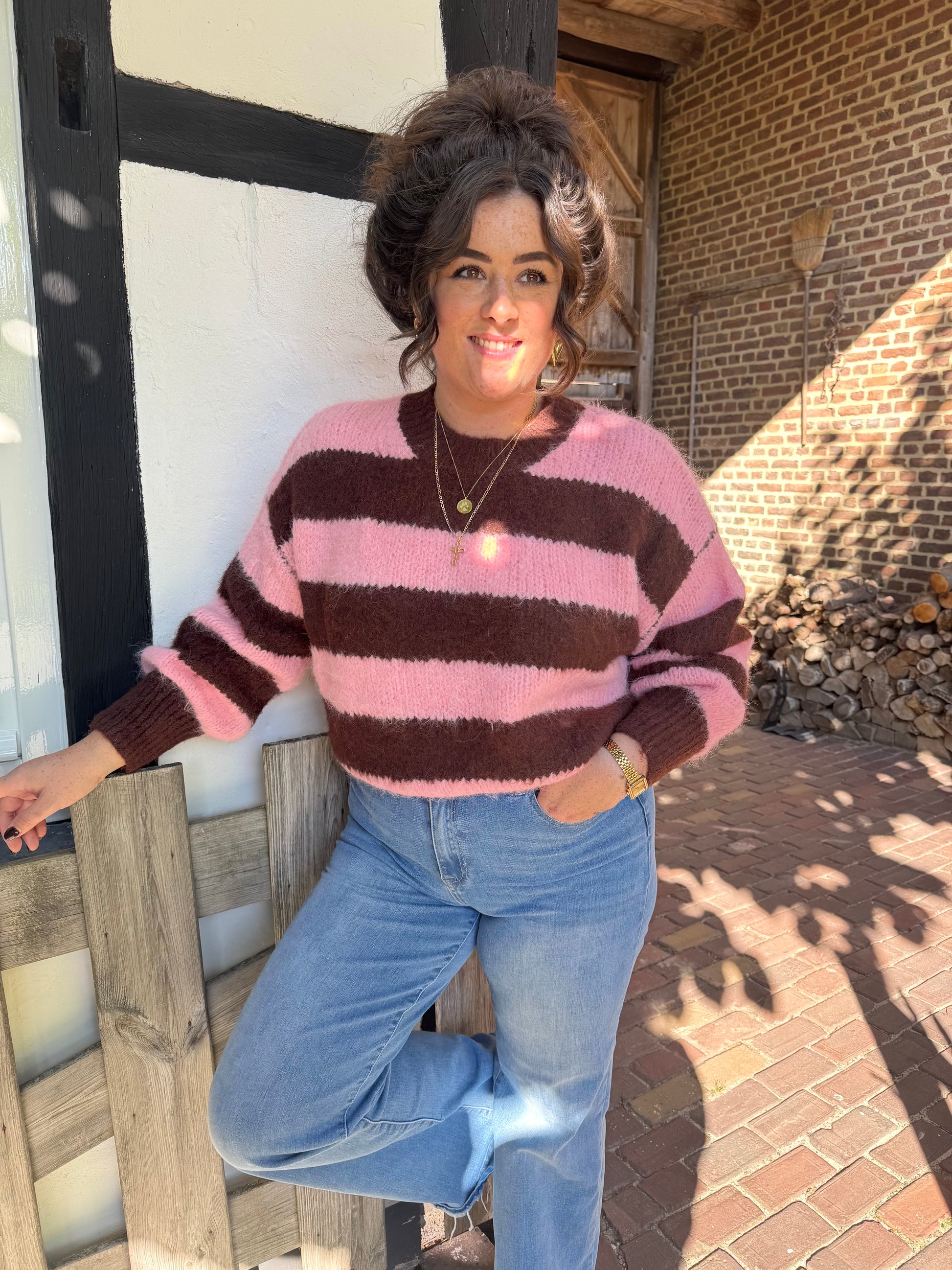 Gebreide trui met ballonmouw. Deze trui hebben wij ieder jaar in de collectie en blijft gewoon heerlijk. Perfect voor de herfst/ winter! Het model van de trui valt tot op de heupen.